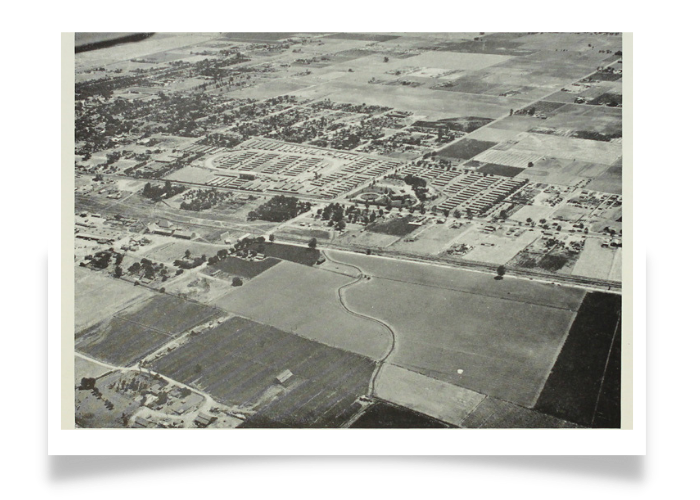 Aerial view of Tulare Assembly Center, California, c. 1942. Courtesy of Densho